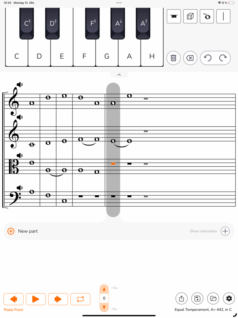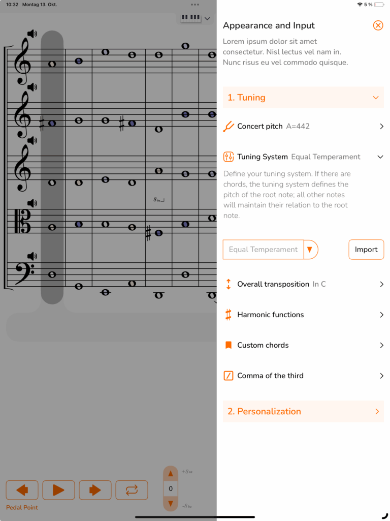 Select a tuning system to define the default pitch of each note. Choose from a list of various tuning systems or import your individual tuning system